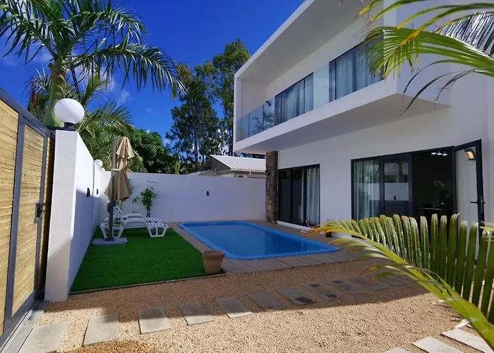 Villa De La Lumiere Trou aux Biches, di 100 m²,si trova a una distanza di 1 km da Maheswarnath Mandir e dispone di una terrazza con piscina. Situato vicino al Blue Safari Submarines, l'appartamento si affaccia sul giardino.